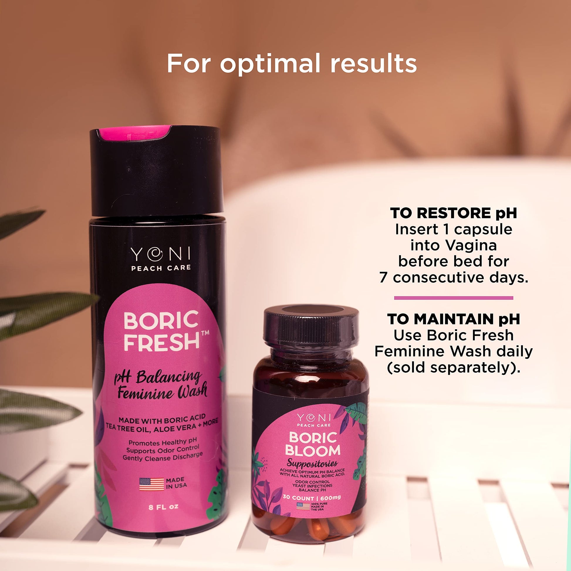 - 🍃HARMONIZE YOUR BODY'S pH BALANCE NATURALLY - Say goodbye to any discomfort caused by vaginal odor and irritation w/ Boric Bloom. Our carefully crafted formula is designed to promote a natural balance in your vaginal pH levels, offering a safe and soothing experience.