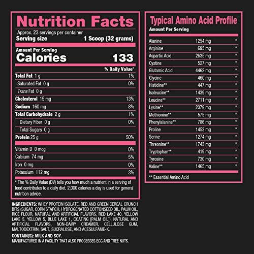 Each scoop contains 25g of high-quality, third-party laboratory tested whey protein isolates, with a complete amino acid profile that includes naturally occurring BCAAs and EAAs.* To achieve the best results, take one scoop immediately after your workout, use as a meal replacement, or as recommended by a qualified healthcare practitioner.*