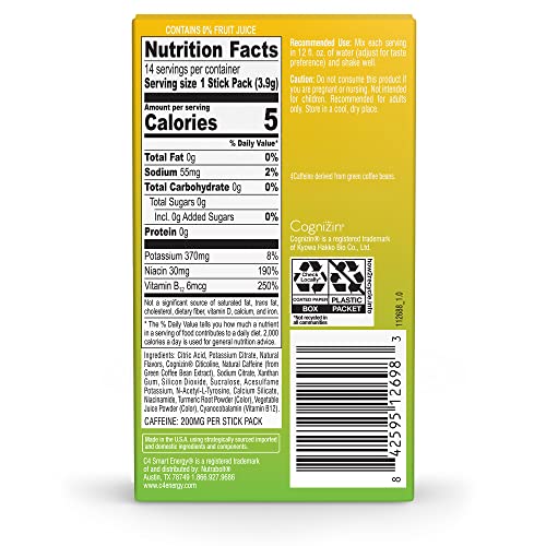 C4 Smart Energy Powder Stick Packs - Sugar Free Performance Fuel & Nootropic Brain