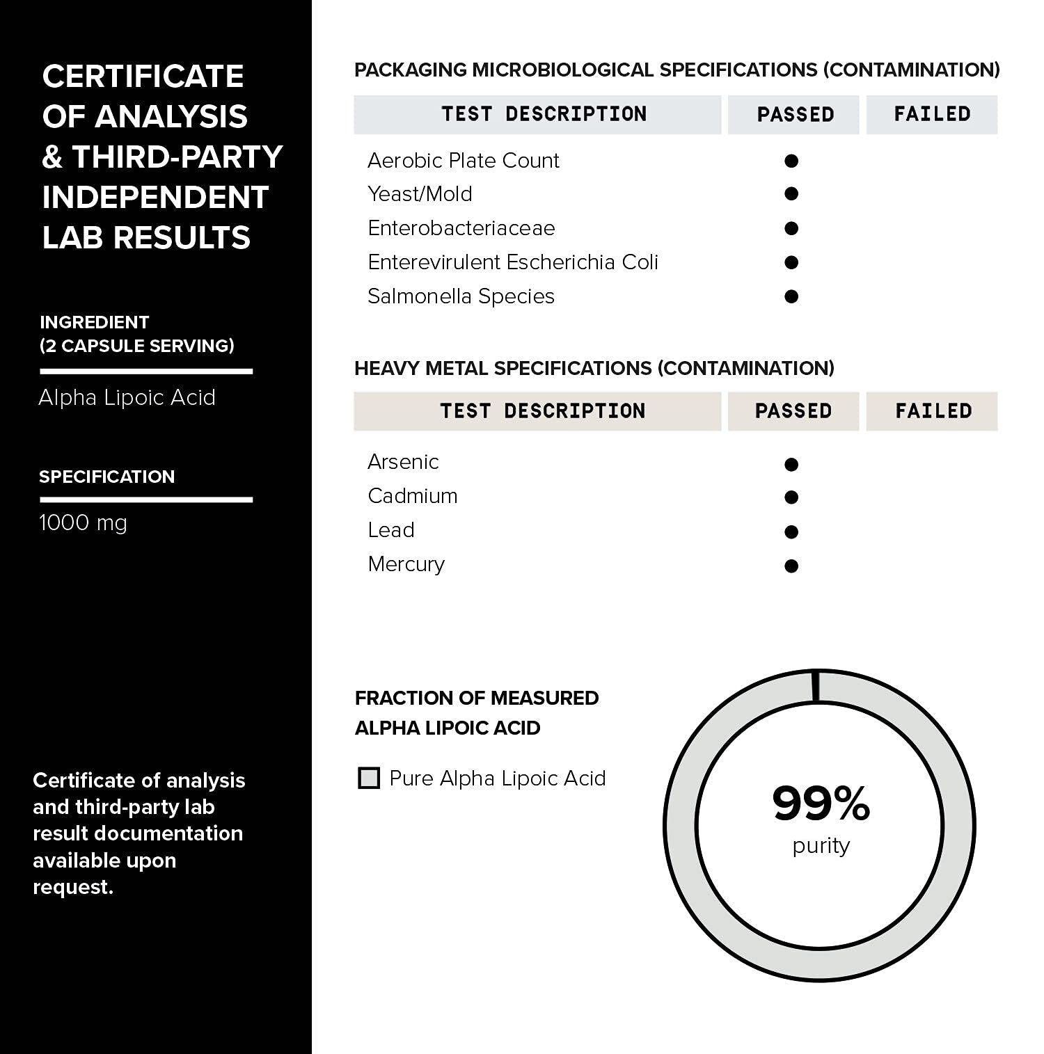 - The Highly Purified Form of Alpha Lipoic Acid - Toniiq 1000mg per serving Alpha Lipoic Acid contains an unprecedented purity level of 99%+ (other Alpha Lipoic Acid products won't disclose their purity levels).