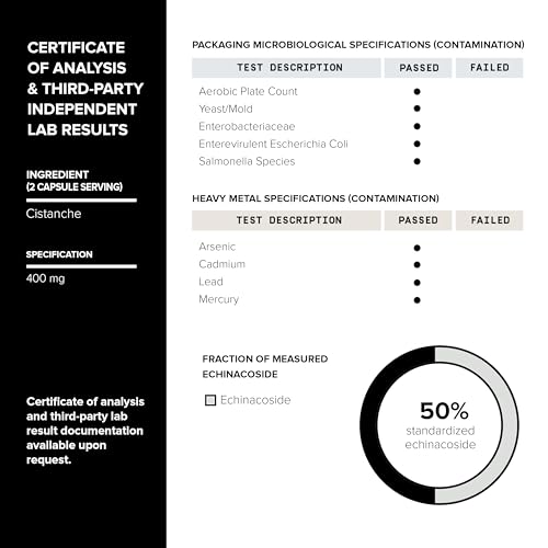 - The Highly Active Form of Cistanche - Toniiq Cistanche Extract for Men is a super-concentrated extract. It's standardized to contain 50% Echinacoside and 10% Verbascoside, delivering the robust benefits of 4000mg of Cistanche Tubulosa.