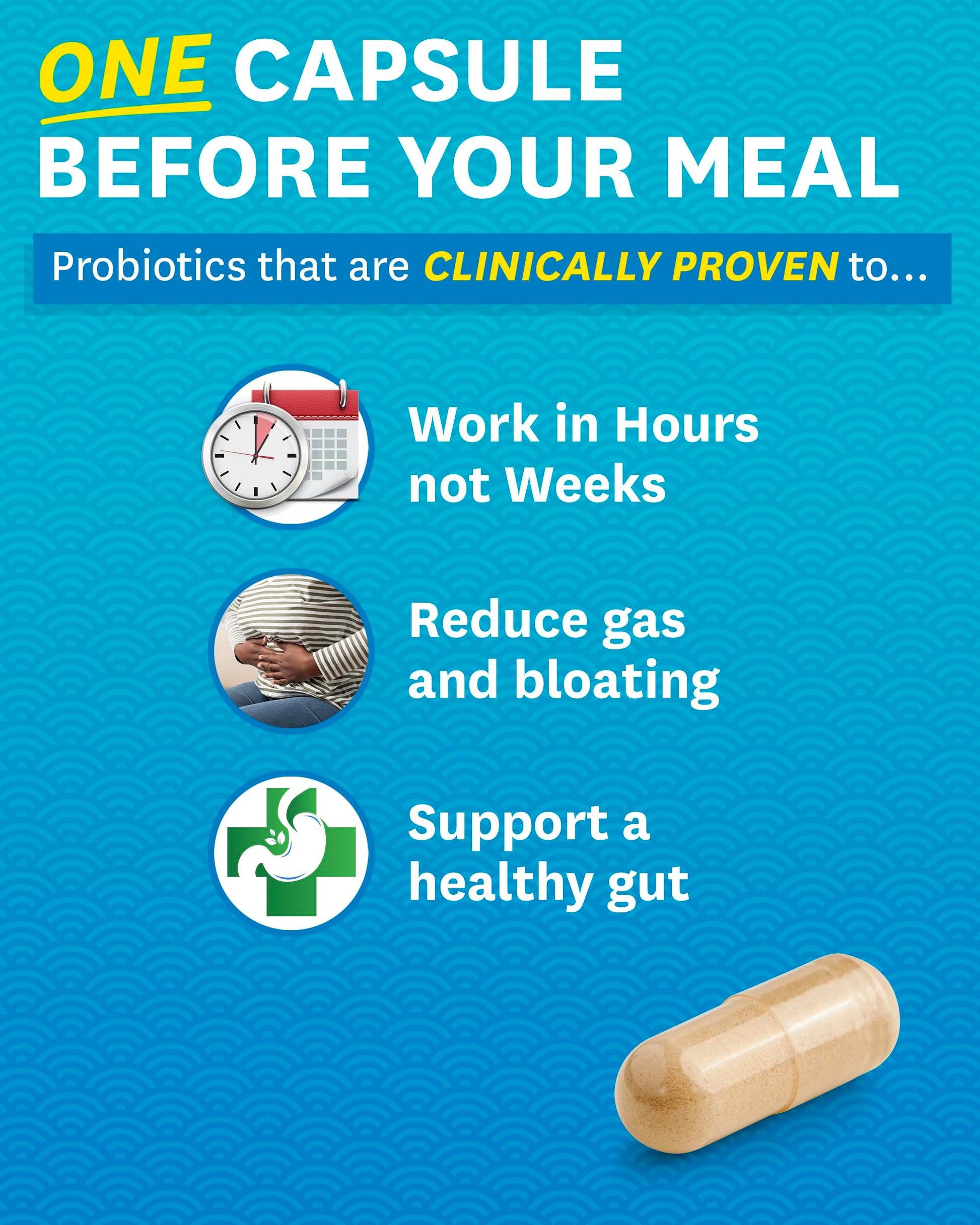 - Digestive Enzymes + Probiotics + Prebiotics: Convenient 3-in-1 gut support solution for relief from occasional bloating, gas, and discomfort from hard-to-digest foods.