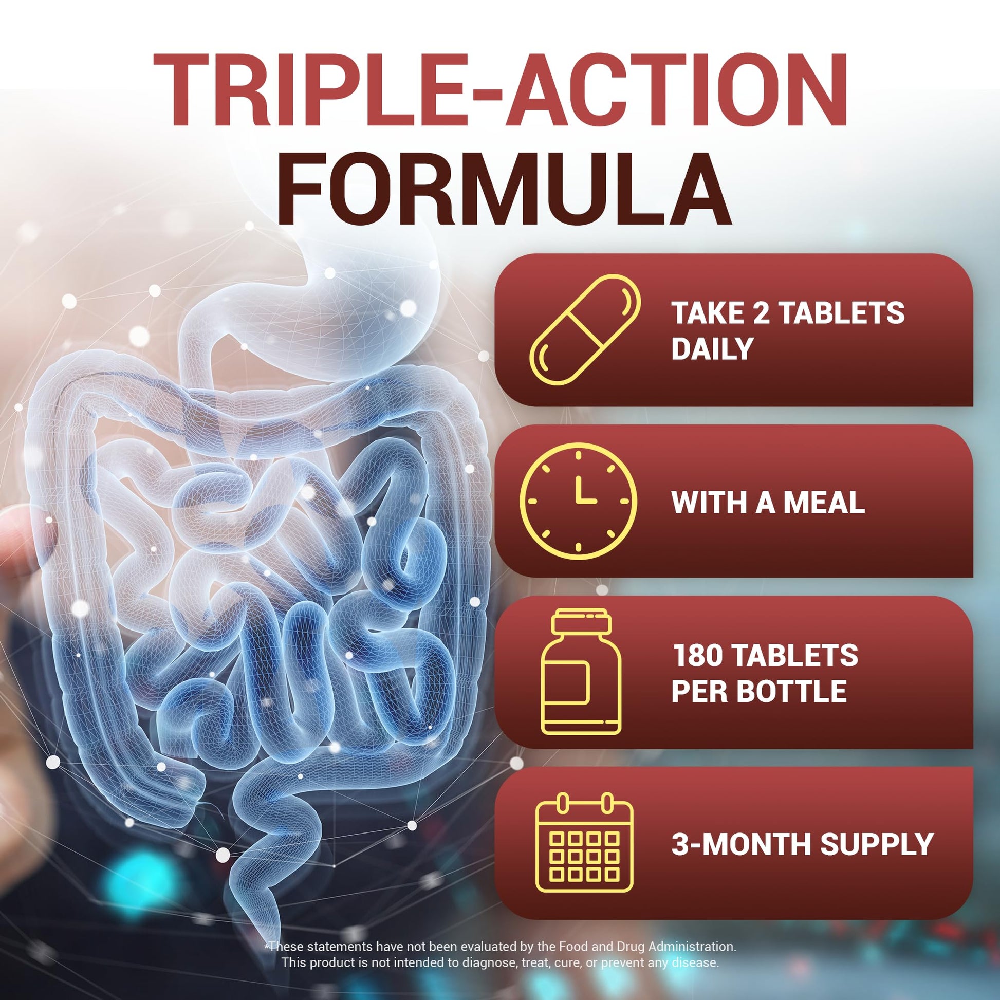 - 𝗔𝗗𝗩𝗔𝗡𝗖𝗘𝗗 𝗗𝗜𝗚𝗘𝗦𝗧𝗜𝗩𝗘 𝗙𝗢𝗥𝗠𝗨𝗟𝗔 - This advanced digestion supplement contains Betaine HCI and a proprietary blend that includes Organic Apple Cider Vinegar (ACV), Ginger Root, Peppermint Leaf and more. Recommended usage is 2 tablets with meals. 90-day supply